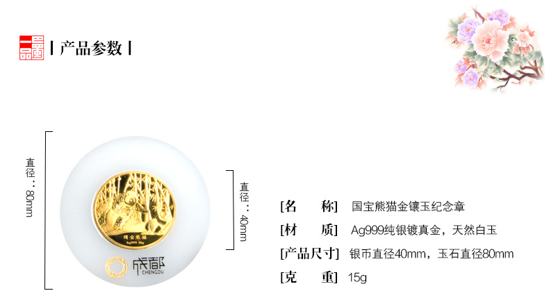 - 商品編碼 國寶熊貓金鑲玉紀念章