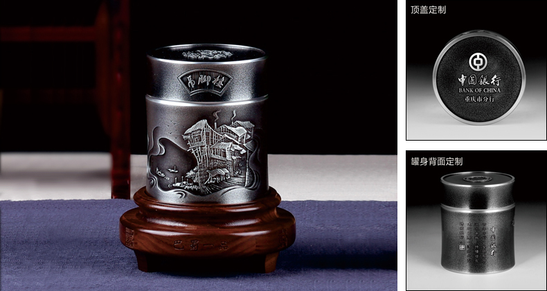 兩頭失路穿心店、三面臨江吊腳樓。本品選用99%以上純錫為原材料,以罐身畫作為載體再現(xiàn)特色民居吊腳樓。展現(xiàn)出山城人民不屈不饒的生活意志以及勞動(dòng)智慧。本品吊腳樓由中國美術(shù)工藝大師姚敘章所作,藝術(shù)性高,定制性強(qiáng)。可在罐身、罐蓋以及精美包裝盒上做LOGO及企業(yè)文化定制,整體低調(diào)有質(zhì)感,非常適合商務(wù)活動(dòng)的禮贈(zèng)。